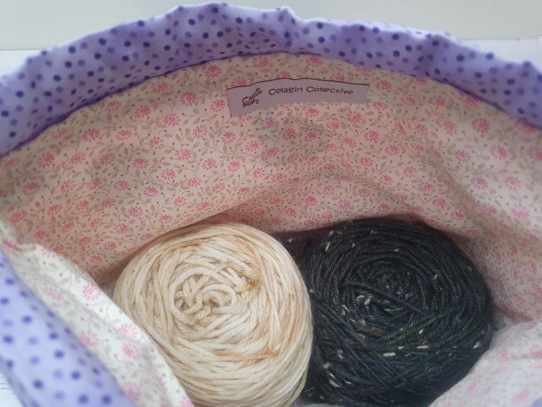 This bag will fit 2-3 x 100g Skein of yarn comfortably.